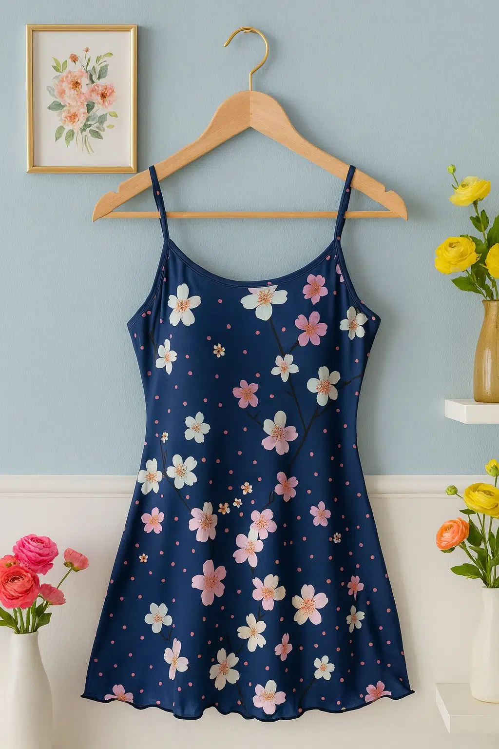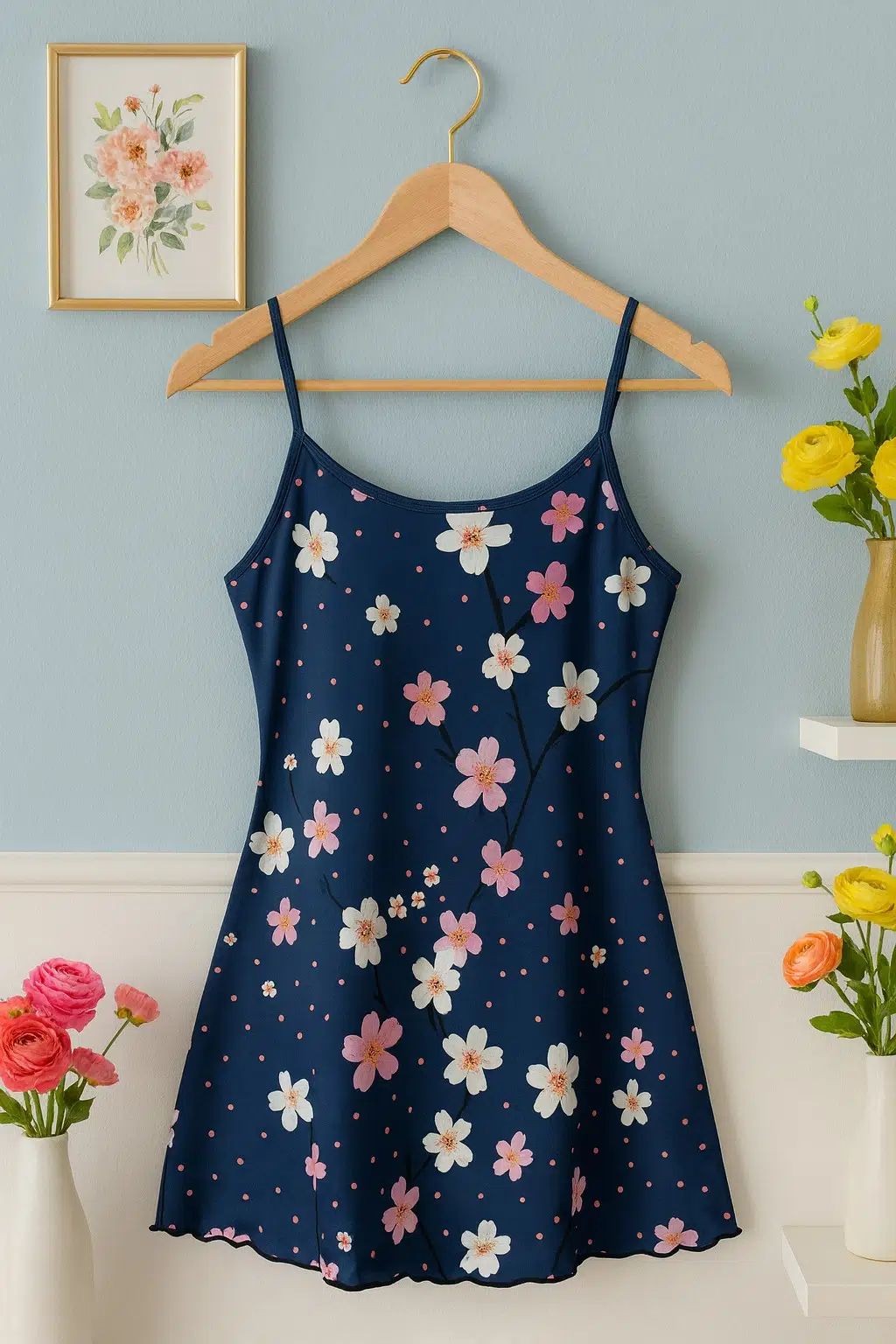 EtiketlerÇiçek Desenli Mavi Askılı Gecelik