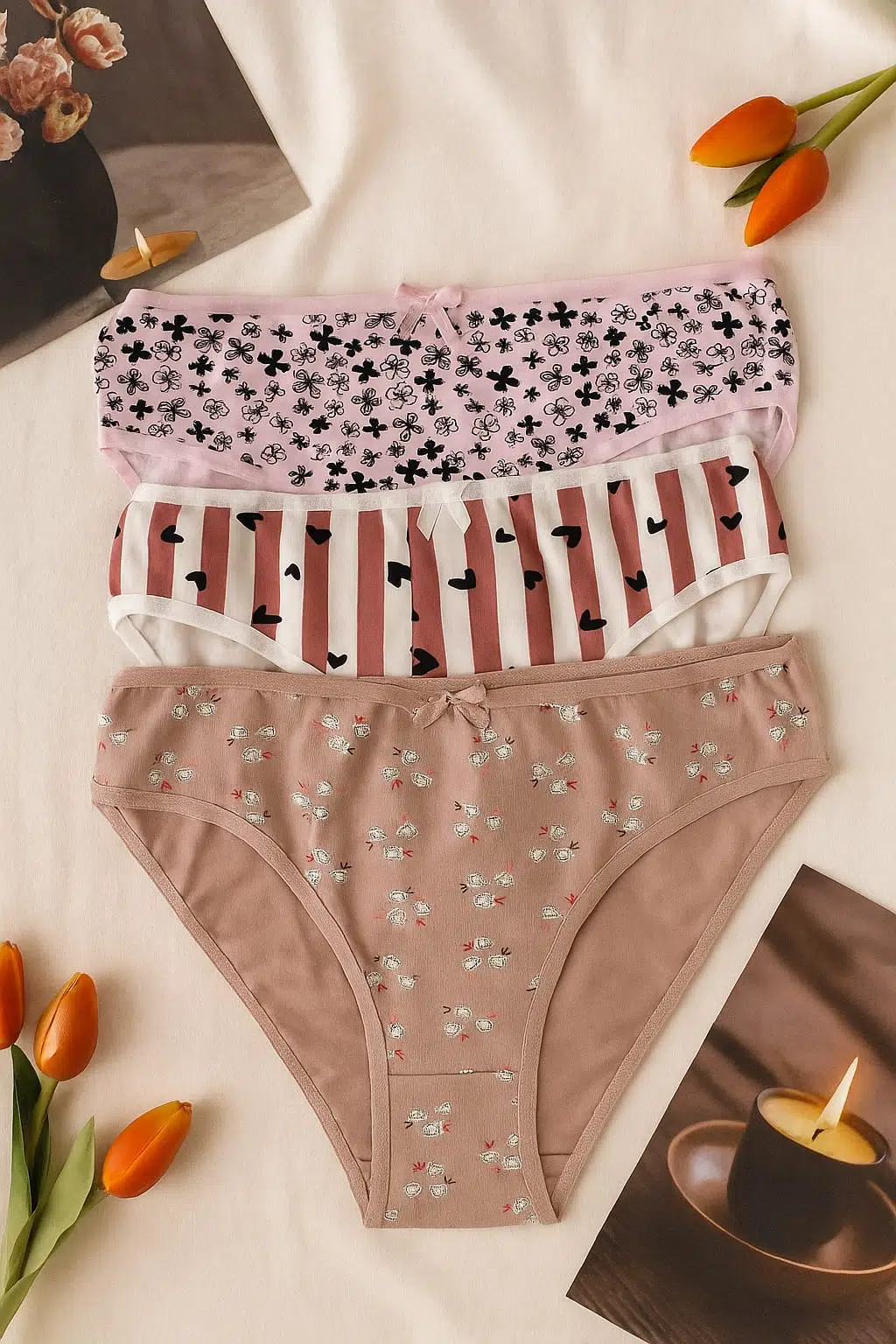 | Etiketler | Kadın 3'lü Pamuklu Desenli Külot Seti - Rahat & Nefes Alan İç Giyim |