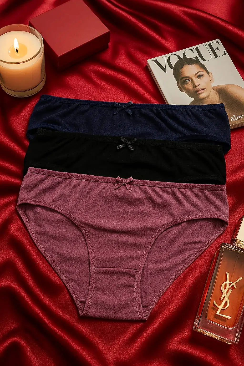 Paket İçeriği: 3 adet külot (Lacivert, Siyah, Mor)