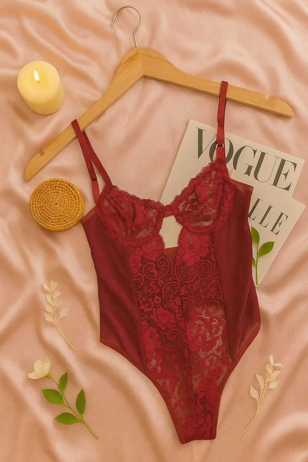 - Zarif kırmızı şeffaf kiraz nakışı ile süslenmiş dantel detayları, feminen stilinizi ön plana çıkarır.; - Askılı tasarımı sayesinde rahat hareket etme özgürlüğü sunar ve gün boyu konfor sağlar.; - Balensiz yapısıyla hafif ve doğal bir kullanım deneyimi yaşatırken, bralette üst siluetiyle modern bir görünüm kazandırır.; - Ayarlanabilir askıları sayesinde kişisel zevkinize göre ayarlama imkanı sunar; böylece her bedene uygunluk gösterir.; - Sürdürülebilirlik açısından bilinçli tercihler yapmak isteyenler için idealdir; çevre dostu olmayan materyaller kullanılmamıştır.; - %90 polyester ve %10 elastan karışımından oluşan kumaşı esneklik ve dayanıklılık sunarken cildinizle mükemmel uyum sağlar.; - Çiçek desenleriyle romantik ve şık bir dokunuş ekleyerek özel anlarınızda fark yaratmanızı sağlar.; - Her mevsime uygun olarak tasarlanmış olup tüm sezonlarda rahatlıkla kullanılabilir; mevsimsellikten bağımsızdır.; - Maksimum 30 derecede elde yıkama önerisiyle kolay bakım avantajına sahip olursunuz; asarak kurutma işlemiyle formunu korur.; - Pratik çıtçıt kapama sistemi sayesinde hızlıca giyilip çıkartılabilir; zamandan tasarruf ederken şıklığınızdan ödün vermezsiniz.; - Dokuma tipindeki dantel materyali hem estetik hem de dayanıklılık açısından üstün kaliteyi garanti eder; uzun süreli kullanım için idealdir.; - Stylish ve gece ortamları için ideal olan bu iç giyim setiyle kendinizi özel hissedin; zarafeti evinizde yaşatın.; - Tanga alt silueti ile minimalizmi benimseyenler için mükemmel bir seçimdir; görsel bütünlüğü bozmadan rahatlık sunar.; - Esnek yapısı sayesinde vücut hatlarınıza mükemmel uyum sağlar; hareket özgürlüğünüz kısıtlanmazken aynı zamanda konforunuzdan ödün vermezsiniz.