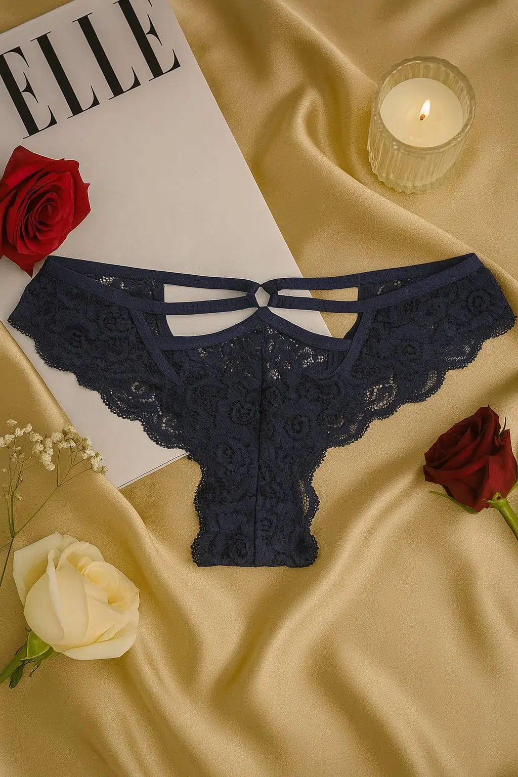 Şıklığın ve zarafetin detaylarda gizli olduğunu bilen kadınlar için tasarlanan bu 3’lü dantel külot seti ile iç giyimde fark yaratın. Siyah, beyaz ve lacivert renklerden oluşan set; ince dantel dokusu, özel kesimi ve zarif taş detaylarıyla estetik bir görünüm sunar. Ön kısmındaki dekoratif şerit ve halka detaylar, ürüne fantezi ve şıklık katarken, esnek yapısı sayesinde vücudu sıkmaz ve gün boyu rahatlık sağlar.