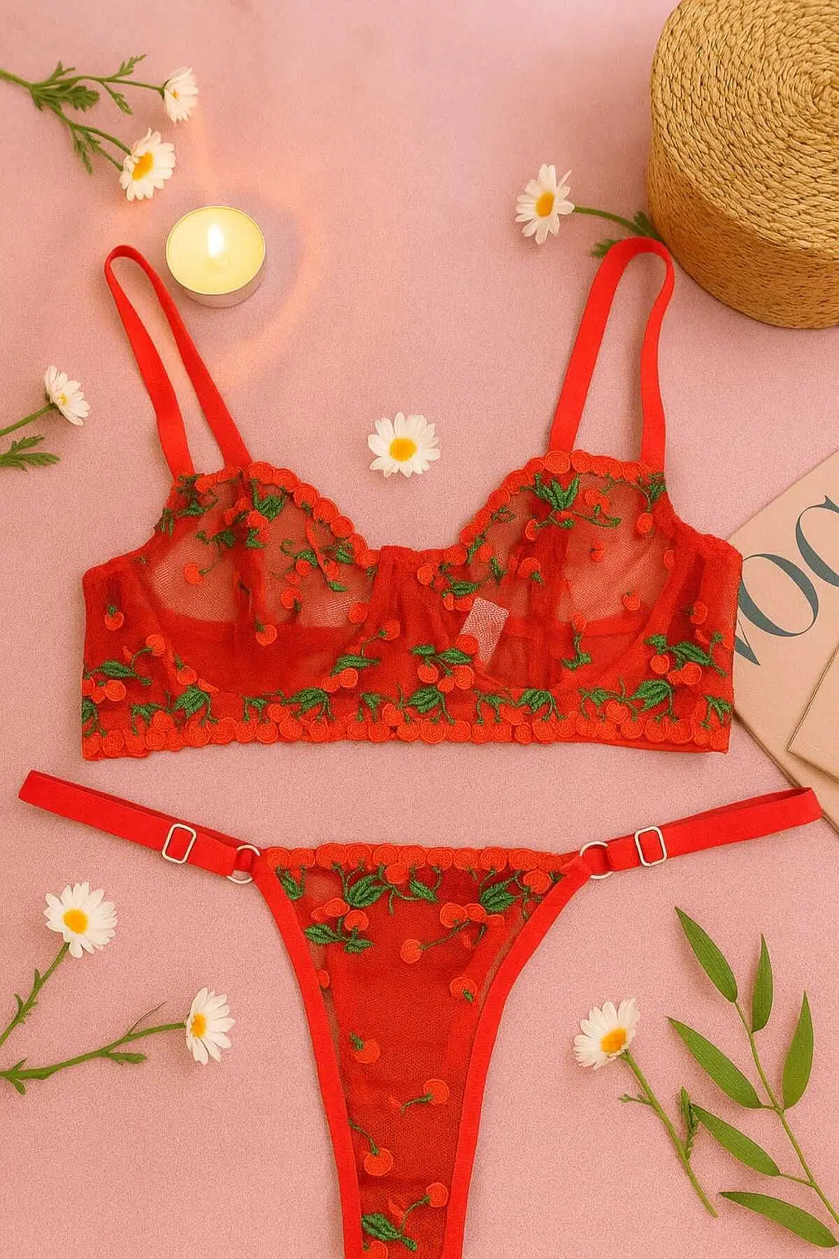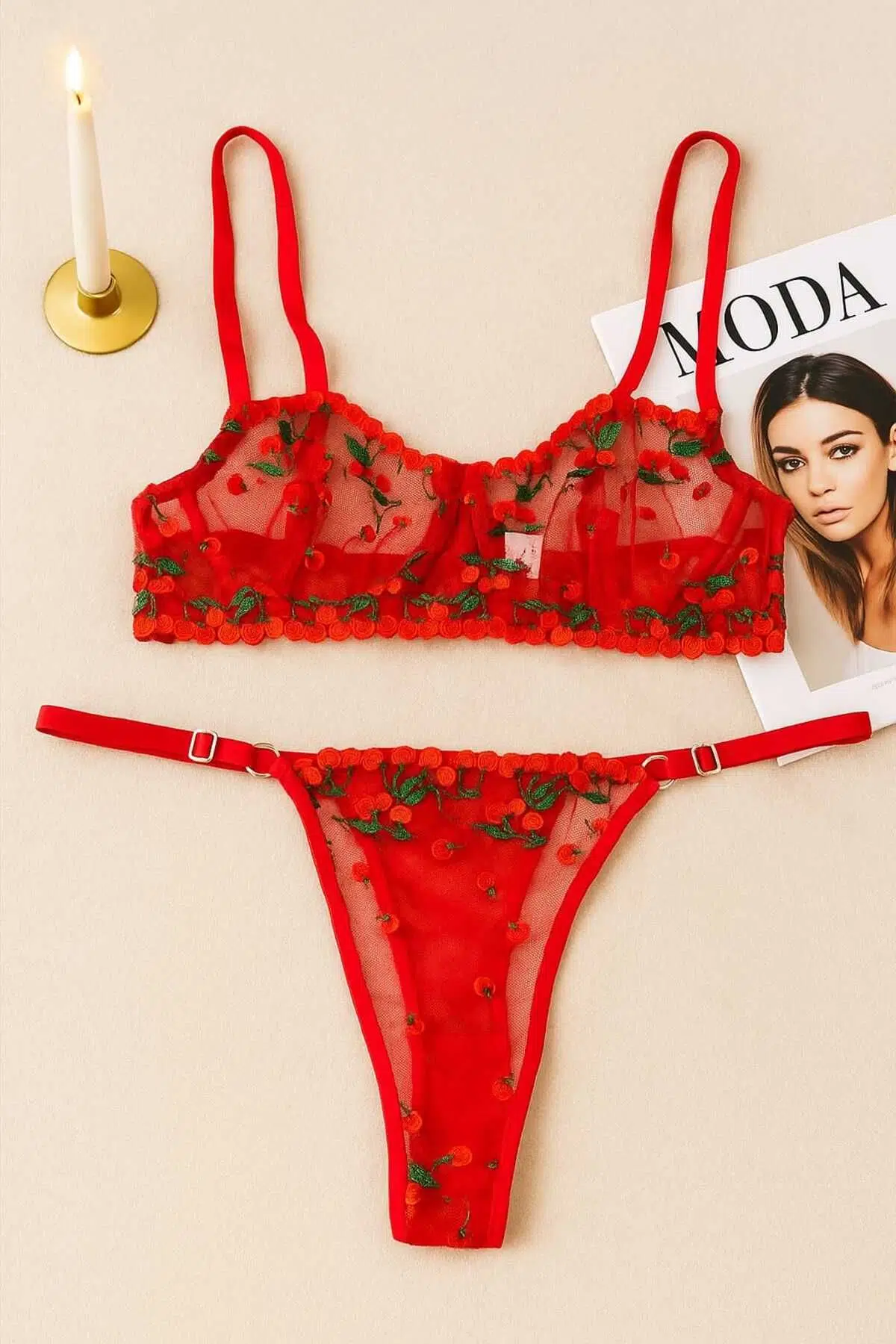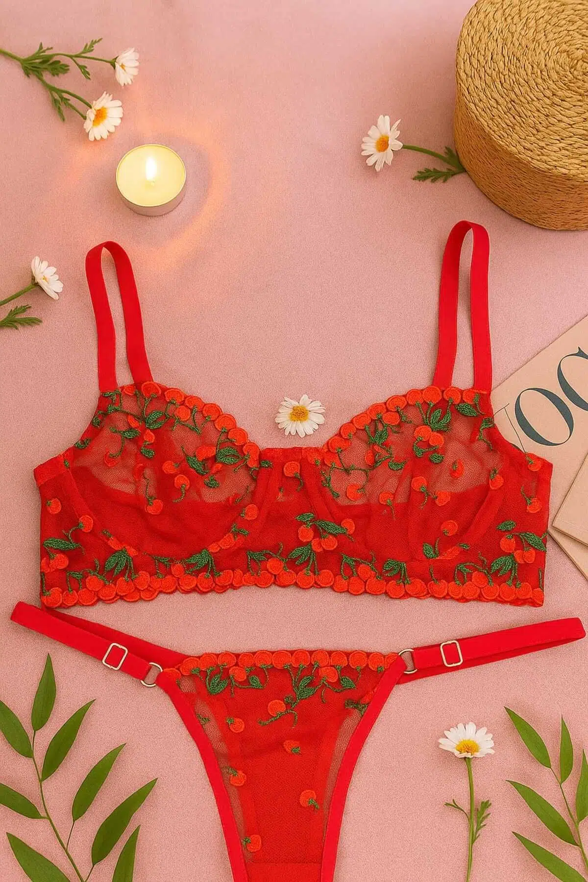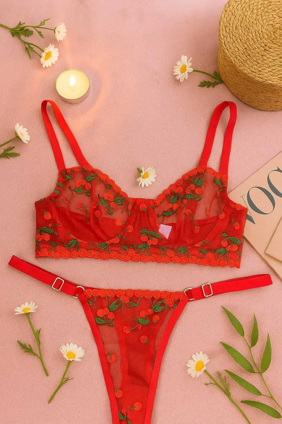 | Etiketler | Kadın Kırmızı Şeffaf Kiraz Nakışlı Dantel Sütyen Külot Takımı - Ayarlanabilir Askılı |