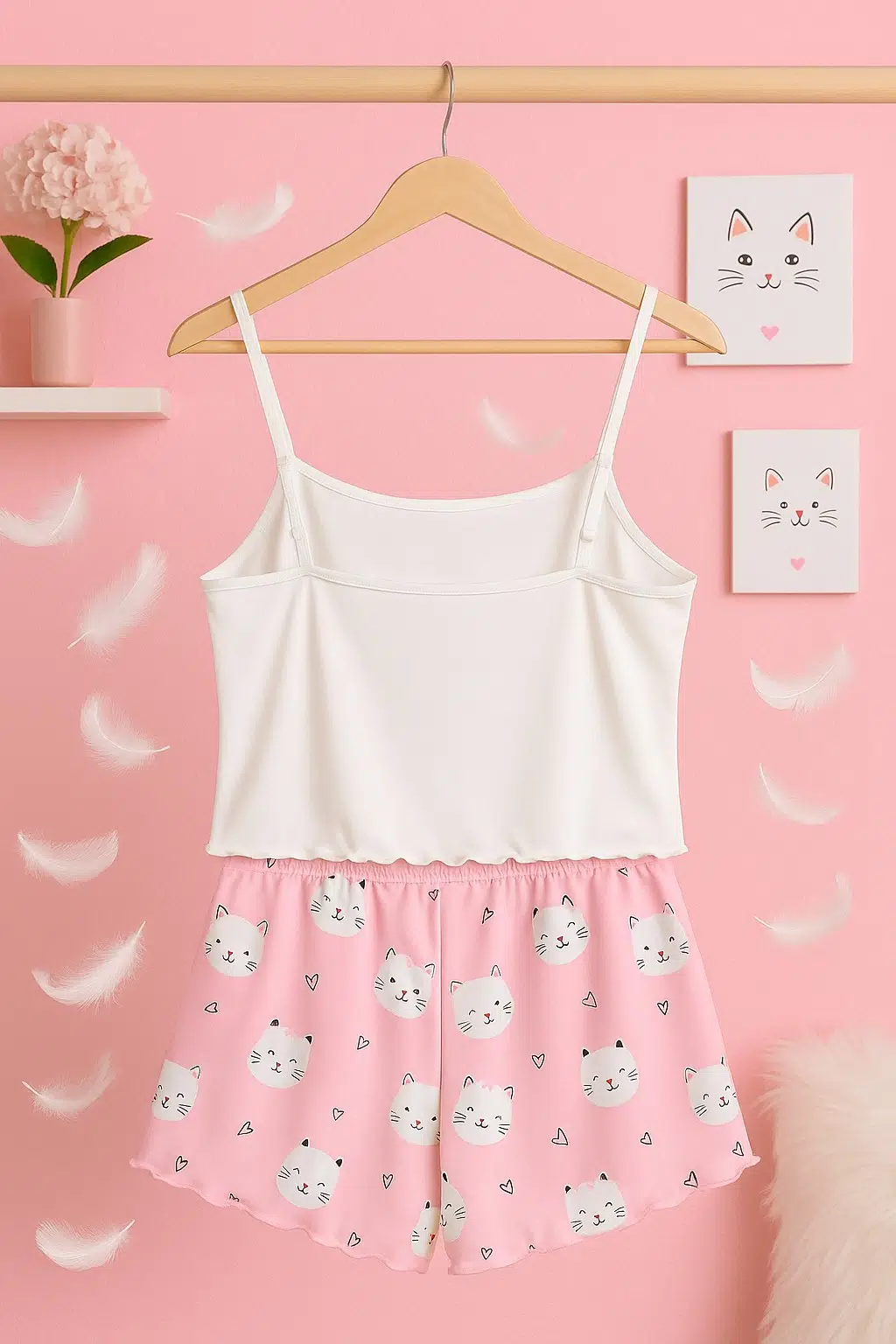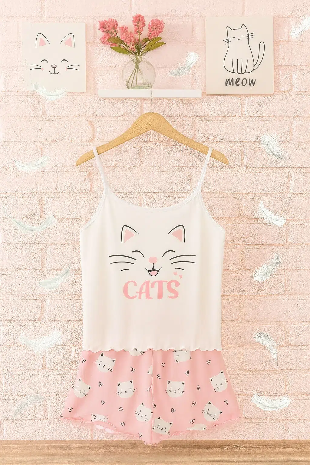 | Etiketler | Kedi Baskılı Renkli Askılı Şortlu Kadın Pijama Seti |