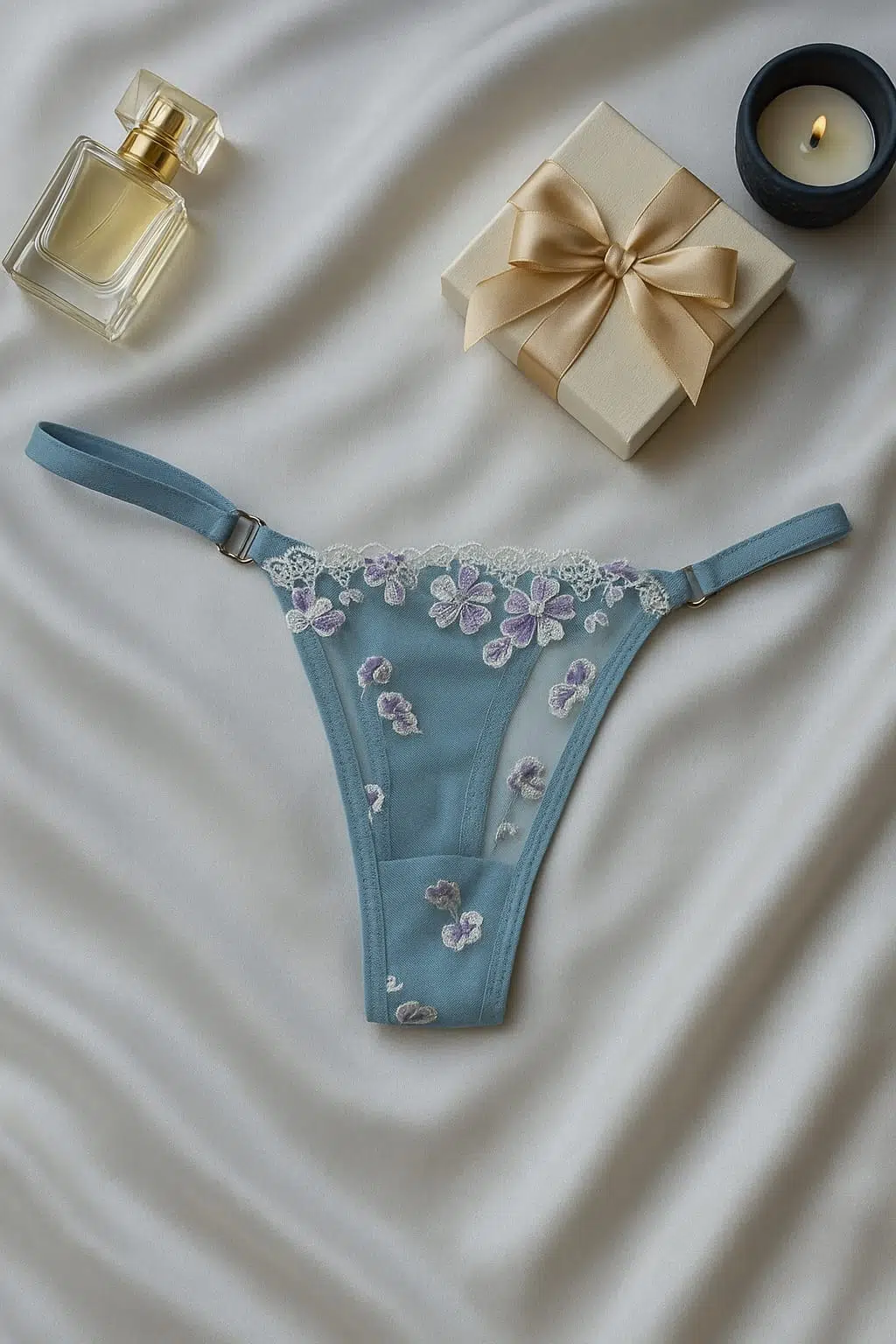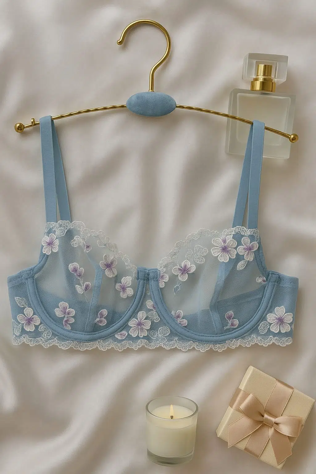 - Zarif mavi çiçek işlemeleriyle süslenmiş transparan dantel sütyen ve string takım, şıklığınızı geceye taşır.; - %90 polyester ve %10 elastan karışımı materyali sayesinde esnek yapısıyla konforlu bir kullanım sunar.; - Çiçek desenleriyle feminen dokunuşları ön plana çıkaran bu takım, stilinizi tamamlamanız için idealdir.; - Maksimum 30 derecede elde yıkama ve asarak kurutma önerisi ile uzun ömürlü kullanım sağlar.; - Dantel dokuması ile göz alıcı bir görünüm kazandırırken, tanga alt silueti rahatlık sunar.; - İki parçadan oluşan set iç giyiminize pratiklik katar; her anınıza uyum sağlayacak şekilde tasarlanmıştır.; - Esnek yapısı sayesinde vücut hatlarınıza mükemmel uyum sağlayarak konforlu bir deneyim yaşatır.; - Balensiz üst silueti ile doğal göğüs şekline sahip olanlar için idealdir; bralette kesimiyle modern bir tarz yaratır.; - Askılı kol boyu sayesinde omuzlarda hafiflik hissi vererek rahat hareket etme olanağı tanır.; - Her mevsime hitap eden tasarım özellikleriyle yılın her zamanında tercih edebilirsiniz.; - Kapsız kap yapısıyla minimalizmi benimseyenler için uygundur; çıtçıtlı kapama şekli kolay kullanım imkanı sunar.