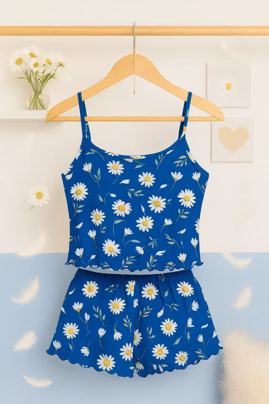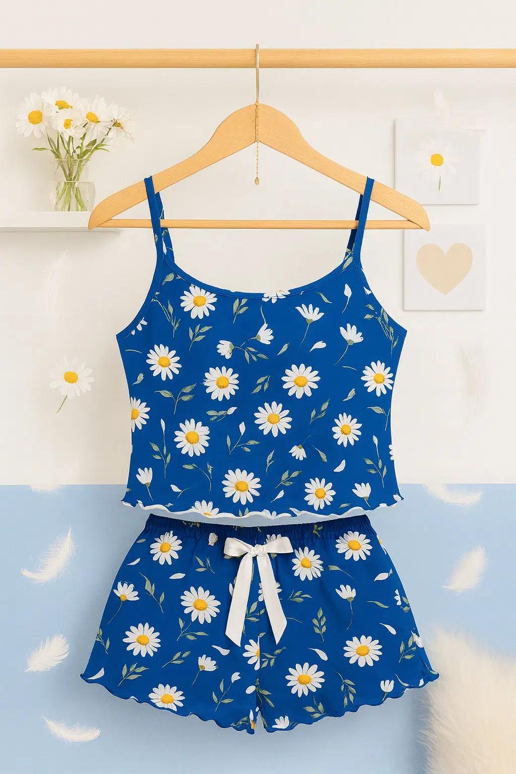 | Etiketler | Mavi Papatya Baskılı Askılı Şortlu Kadın Pijama Seti |