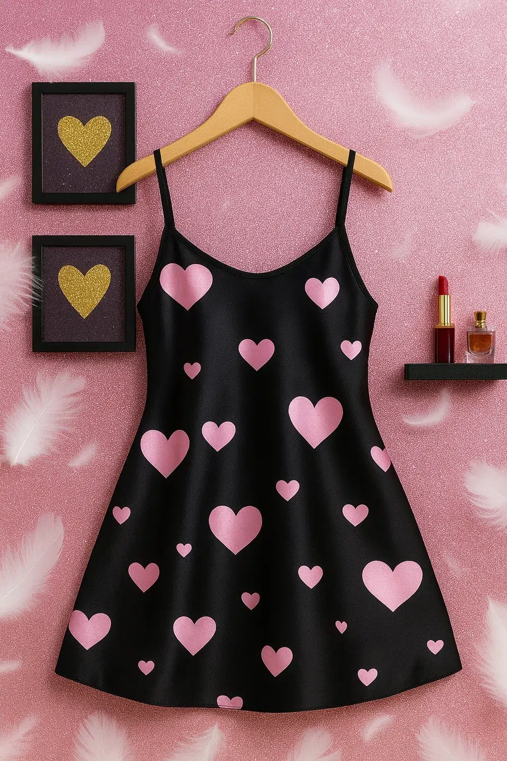 | Etiketler | Siyah Üzerine Pembe Kalp Baskılı Saten Kadın Gecelik Modeli |
