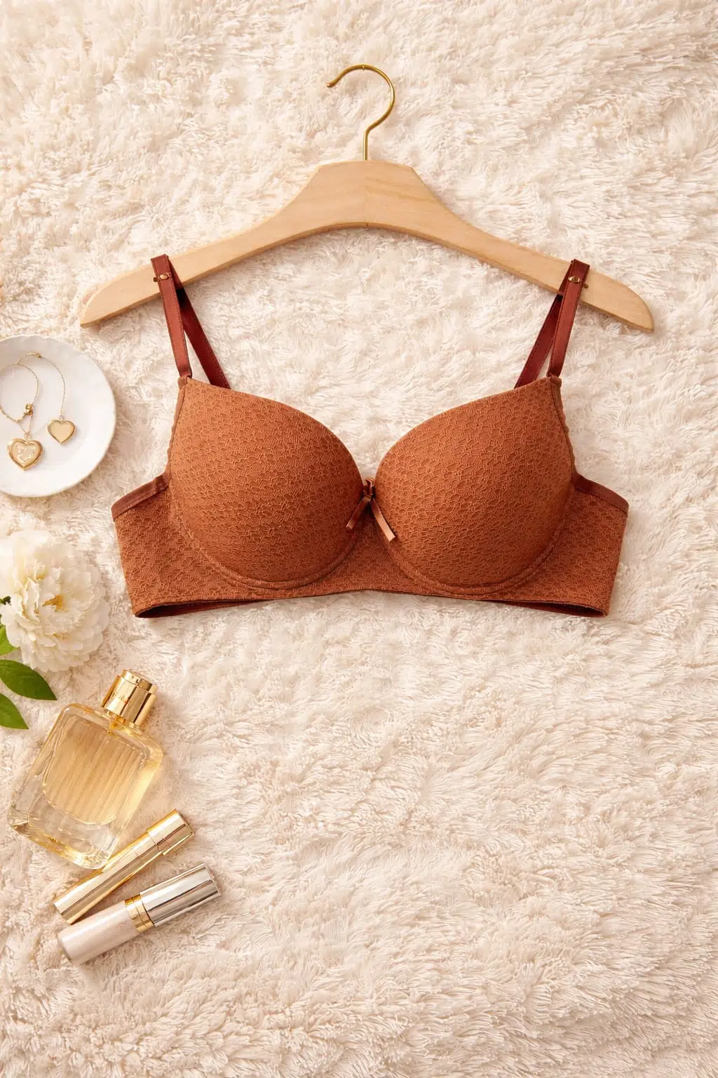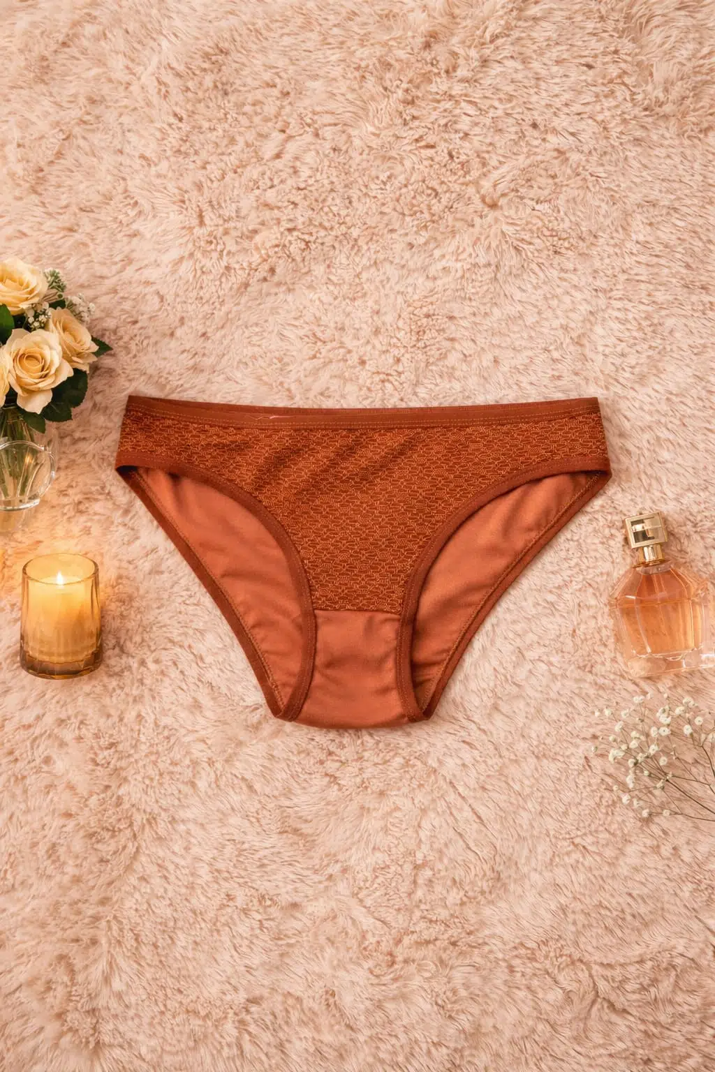 Doğal ve sıcak tarçın tonu ile zamansız bir şıklık sunan bu sütyen & külot takımı, günlük kullanım için ideal konfor sağlar. Minimal dokulu kumaşı ve sade tasarımı sayesinde hem şık hem de rahat bir deneyim sunar.